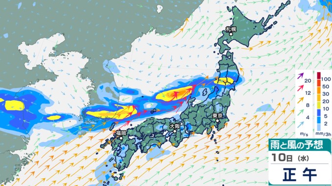 東北・北陸で大雨、関東きょう昼過ぎから激しい雨に注意…今週は梅雨前線の南下で西日本も雨に…雨雲の動き予測8日(月)~13日(土)雨シミュレーション