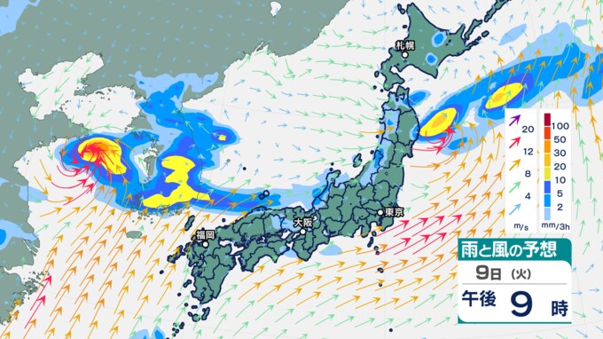 ■関東地方では、9日昼前から夜遅くにかけて、大気の状態が非常に不安定となるでしょう。落雷や竜巻などの激しい突風、降ひょう、局地的な激しい雨に注意してください。