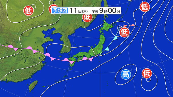 東北地方や東日本では11日にかけて、西日本では12日にかけて、雷を伴った大雨となるところがある見込みです。