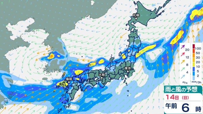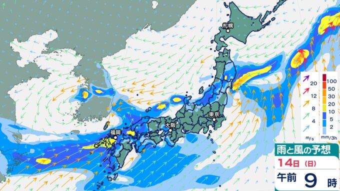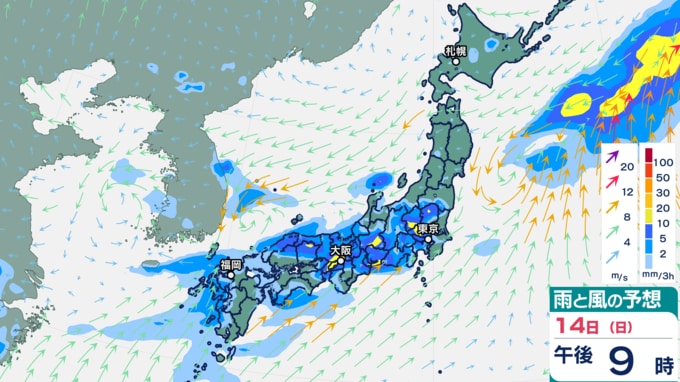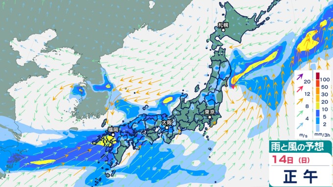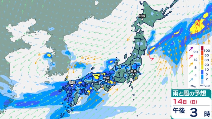 15日(月・祝)海の日も九州から中国、近畿、関東、東北など広い範囲で雨に