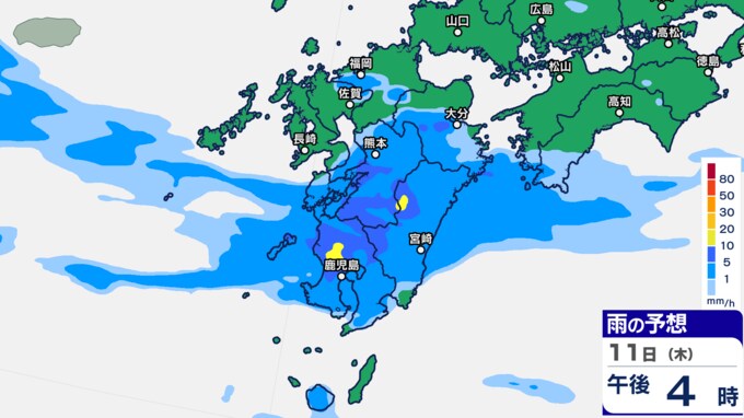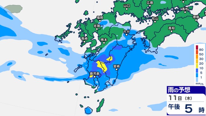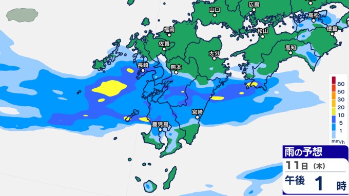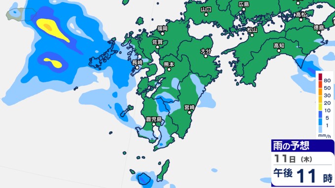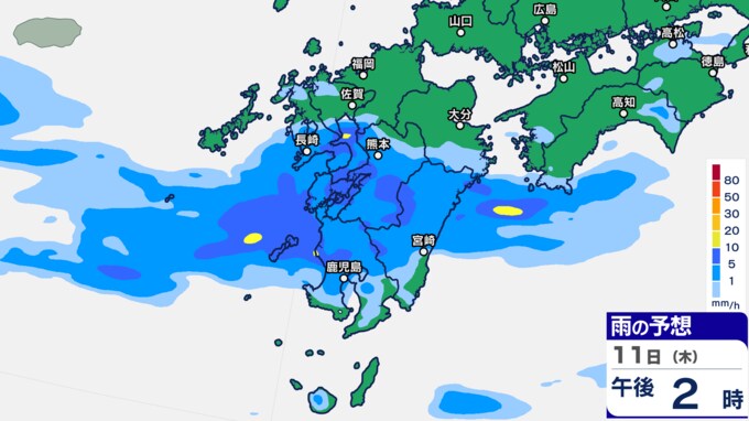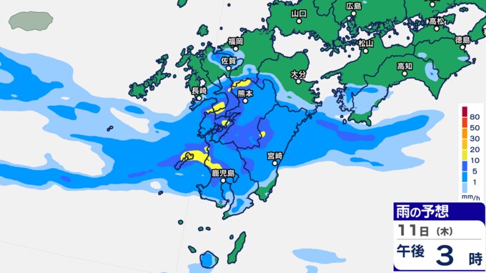 九州あすにかけ大雨のおそれ…梅雨前線が停滞 雨雲の動き予測11日(木)~12日(金)1時間ごとの雨シミュレーション【九州・沖縄16日間天気予報】