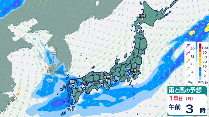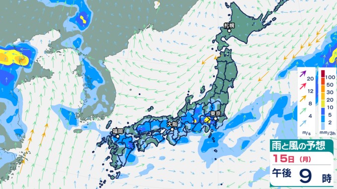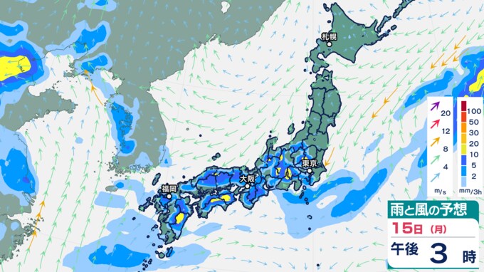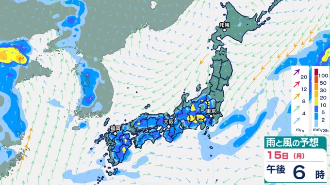 梅雨前線が活発化 九州、関東甲信、近畿など西日本から東北で大雨に警戒を…雨雲の動き予測きょう~15日(月)雨シミュレーション【大雨情報】