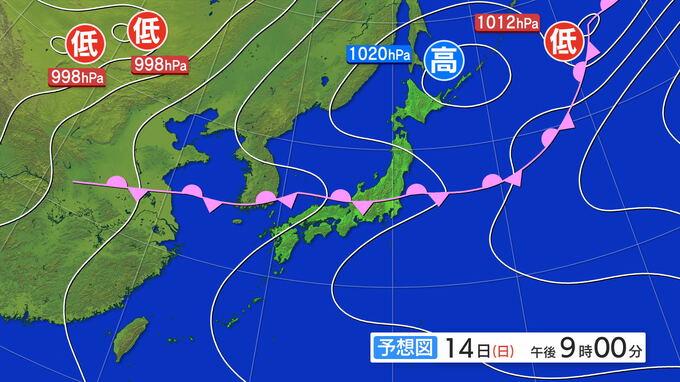 梅雨前線は15日にかけて対馬海峡から東日本に停滞する見込みです。この前線に向かって暖かく湿った空気が流れ込むため、西日本から東日本では大気の状態が非常に不安定となり、15日にかけて雷を伴った大雨となるところがあるでしょう。