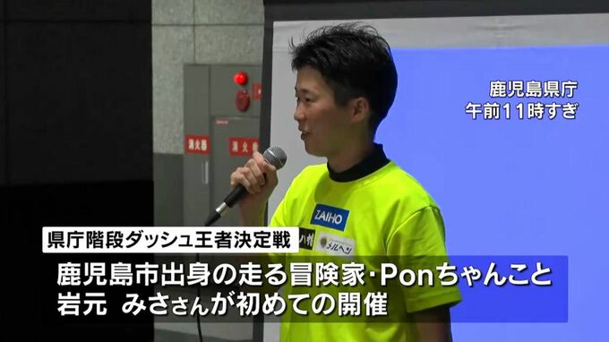 地上20階建ての鹿児島県庁の階段を一気に駆け上がるイベントが初めて開かれました。
