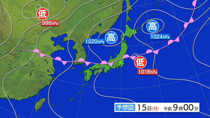 15日に予想される1時間雨量は多い所で、薩摩地方で50ミリ、大隅地方で40ミリ、15日午前0時から16日午前0時までに予想される24時間雨量は多い所で、薩摩地方で120ミリ大隅地方で100ミリです。