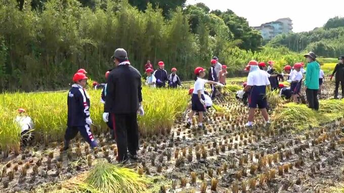超早場米「金峰コシヒカリ」を小学生が稲刈り体験「魚やみそ汁と一緒に食べたい」 鹿児島・南さつま市 2024年7月17日(水) 16:08 国内 南さつま市で超早場米の「金峰コシヒカリ」の収穫が始まっています。17日は地元の小学生が稲刈り体験をしました。稲刈りをしたのは南さつま市の義務教育学校・金峰学園の5年生56人です。出荷のはやい早場米の稲刈…