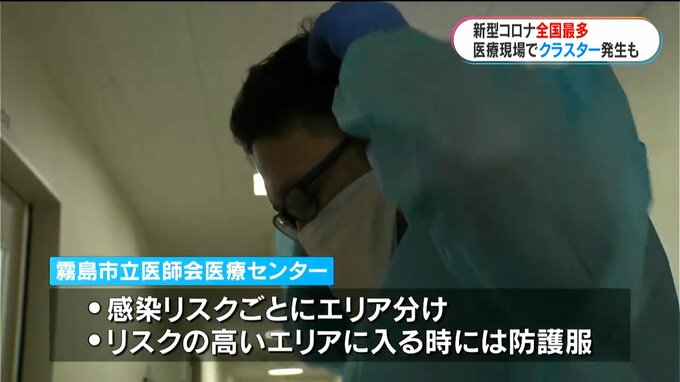 (霧島市立医師会医療センター 重田浩一朗副院長)「スタッフが防御具をつけるが、それを着脱するのにすごく手間がかかり業務がかなり増えていく。精神的にも感染しないよう注意しないといけないから、そういう意味で負担が大きくなる」