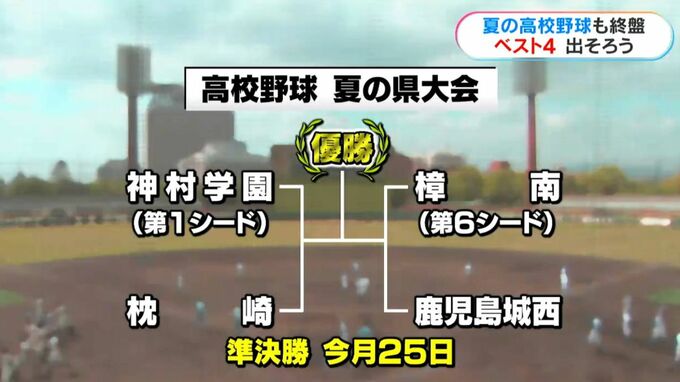 22日で、ベスト4が出そろいました。準決勝の組み合わせは、神村学園対枕崎、樟南対鹿児島城西。準決勝は2試合とも、3日後の今月25日に行われます。