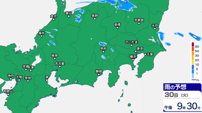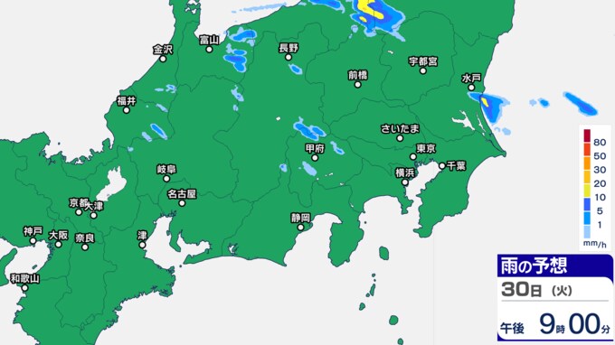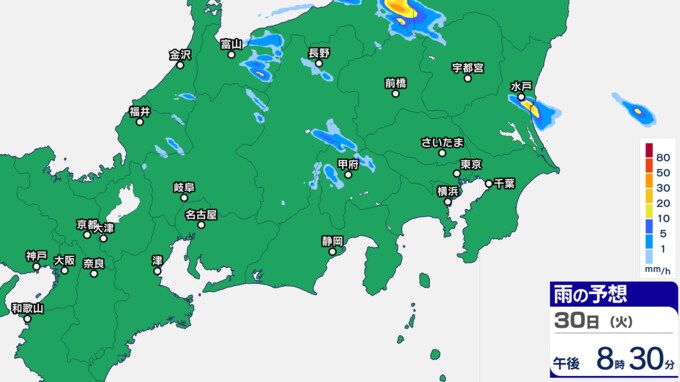 東京地方、埼玉県、山梨県には「雷と突風及び降ひょうに関する気象情報」を発表し、30日夜遅くにかけて、落雷や竜巻などの激しい突風、局地的な激しい雨に注意を呼びかけています。