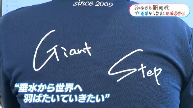 社員のユニホームに刻まれている文字。「垂水から世界へ羽ばたいていきたい」という思いを込めた増永さん直筆の“GiantStep”です。