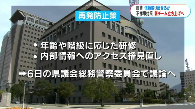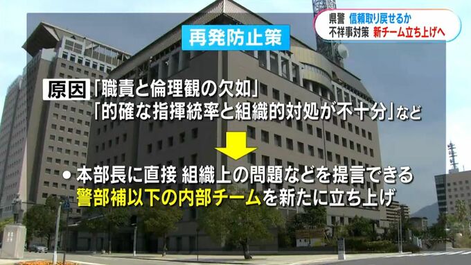 相次ぐ県警の不祥事を巡り、県警が検討を進めてきた再発防止策が明らかになりました。再発防止策には、警部補以下の警察官が、本部長に組織の問題を提言する内部チームをつくることが盛り込まれる方針です。