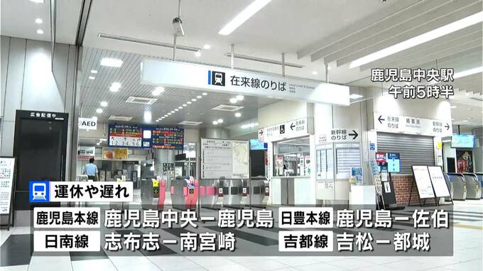 日豊本線や日南線など JR在来線で始発から運転見合わせも 交通への影響続く 2024年8月9日(金) 06:43 国内 今回の地震を受けJR在来線の一部で始発から運休や遅れが出ます。列車の運休や遅れが出るのは●鹿児島本線の鹿児島中央と鹿児島の間、●日豊本線の鹿児島と佐伯の間、●日南線の志布志と南宮崎の間、●吉都線の吉松…