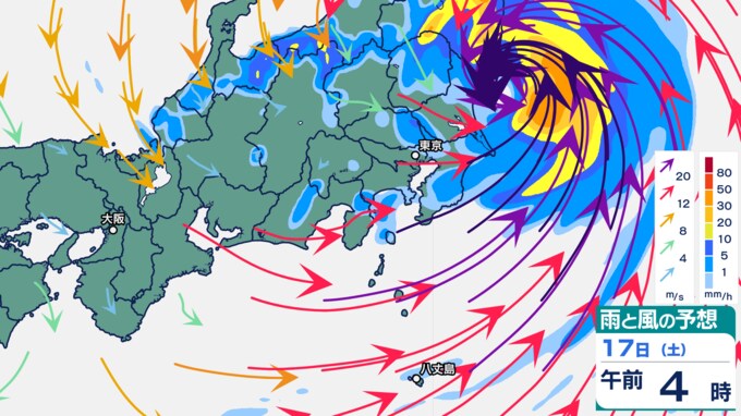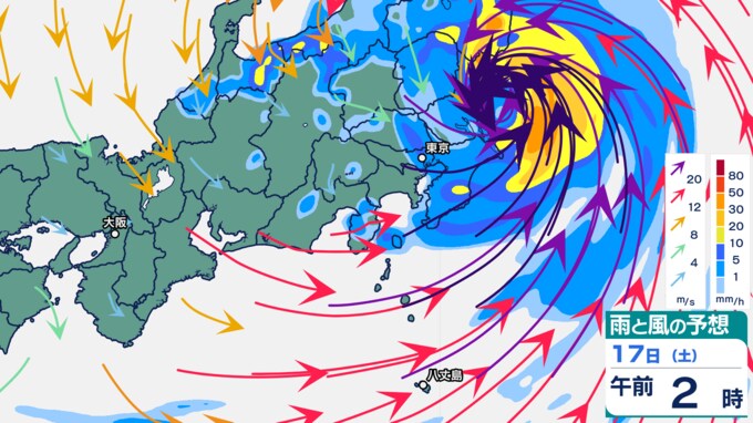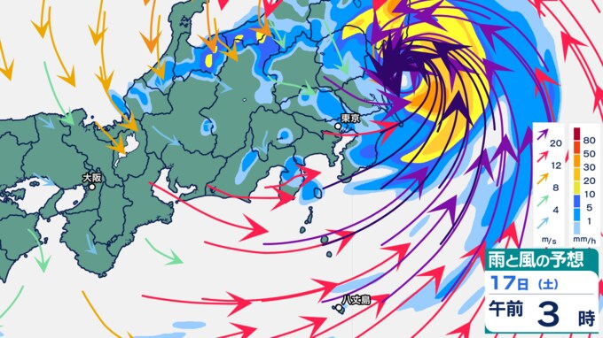 3. 【台風情報】関東甲信地方「線状降水帯発生のおそれ」「恐怖を感じるほどの雨」「時速160キロの風、外出は極めて危険」台風7号明日最接近 今日と明日1時間ごとの雨・風シミュレーション【台風進路】