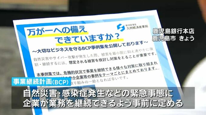巨大地震や感染症に備え「簡易版BCP」策定に向け中小企業向け講座 2024年8月20日(火) 19:56 国内 地震などの災害時に、企業などが事業を続けるための方法を学ぶ講座が、鹿児島市で開かれました。BCP=事業継続計画は、地震などの自然災害や感染症の発生などの緊急事態に、企業が業務を継続できるよう事前に定め…