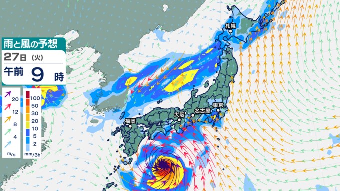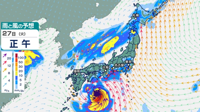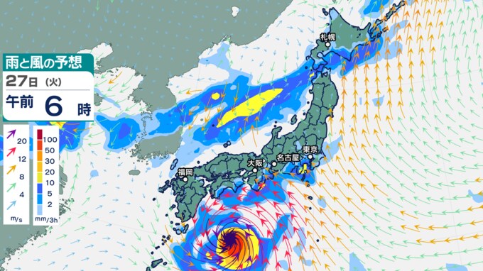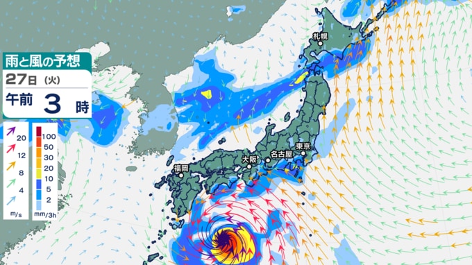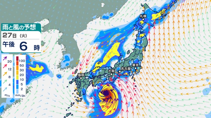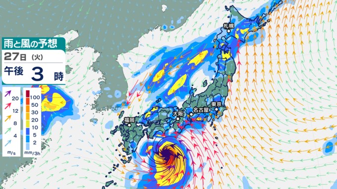 28日(水)雨・風シミュレーション台風接近・上陸のおそれ
