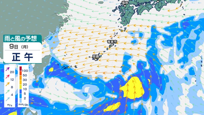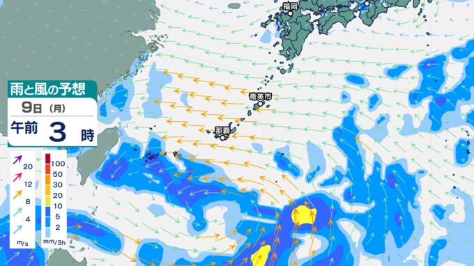 【台風情報】「台風11号の次」は?沖縄・奄美に発達した雨雲と強風 9日(月)までの雨・風シミュレーション
