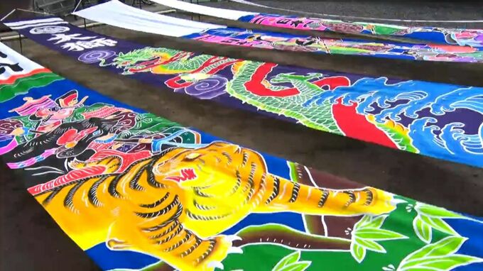 亀崎染工。代々、染物を家業としてきて、ことし創業155年。大漁旗や五月のぼり、法被などの制作を手掛けています。