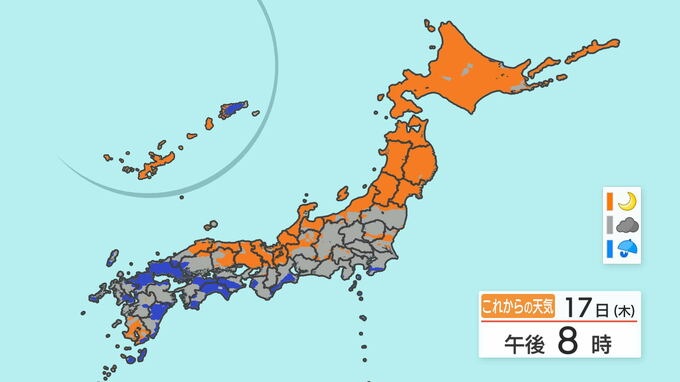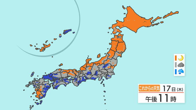 【スーパームーン】きょうは「今年最大の満月」月が大きく見える理由は? 全国夜の天気は? 2024年10月17日(木) 18:45 国内 ■気になる天気は?/全国1時間ごとの予報 北日本から東北地方は、スーパームーンが見られそうです。中国地方から近畿地方、関東地方は薄っすら雲がかかり「おぼろ月のスーパームーン」が見られるチャンスがあります。九州と四国は雨雲が広がり厳しいかもしれません。