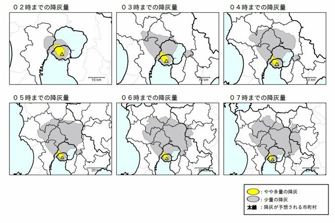 気象庁が午前1時51分に発表した降灰予報(詳細)では、桜島や鹿児島市北部、姶良市、霧島市などに降灰が予想されています。