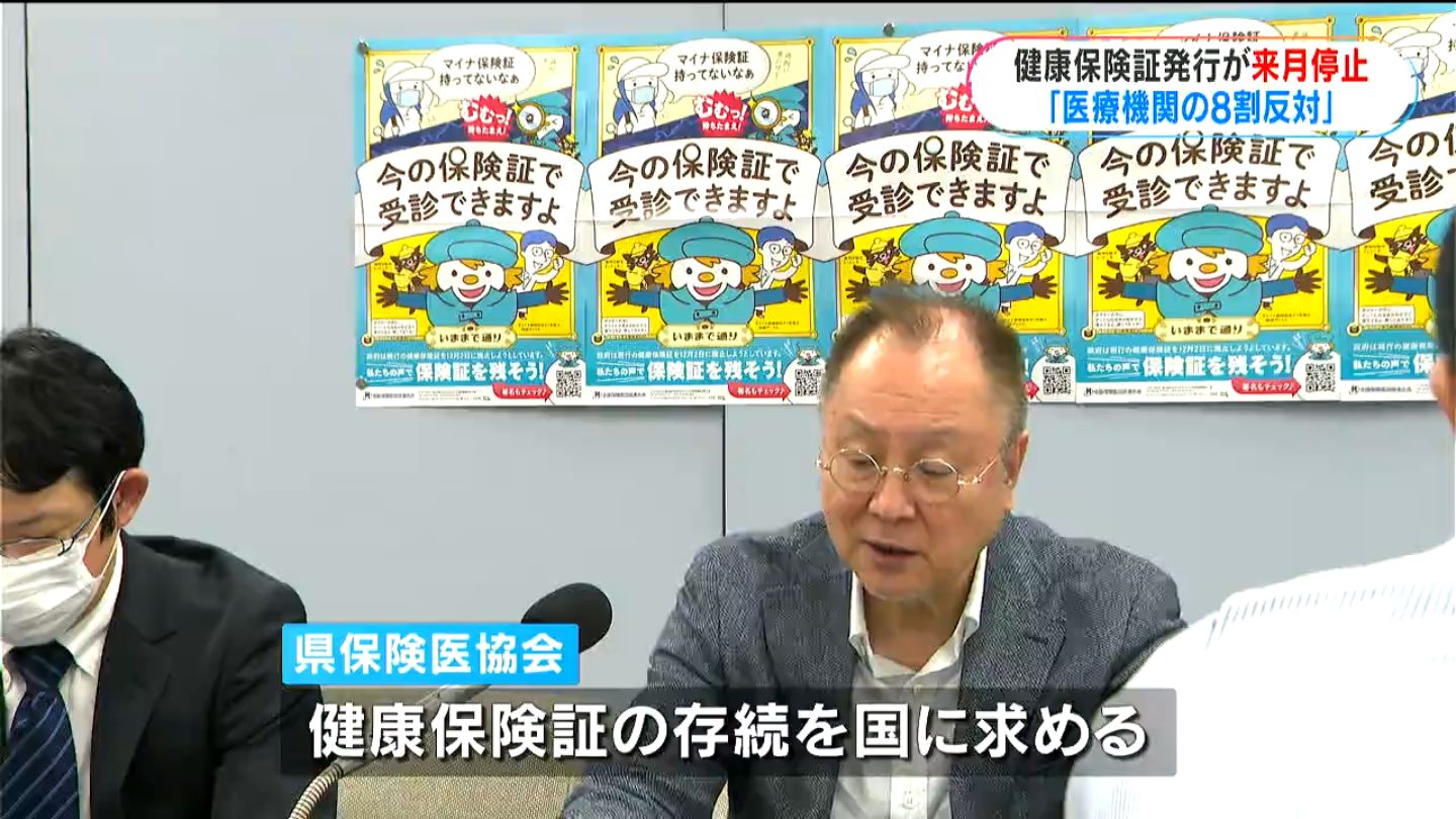 国は従来の健康保険証の新たな発行を来月停止し、マイナンバーカードとの一体化を目指しています。県保険医協会の調査で、県内の8割を超える医療機関が発行停止の延期や存続を求めていることが分かりました。