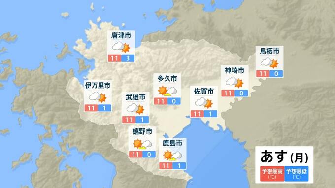 【九州の天気予報】あす朝今シーズン一番の冷え込み【福岡・佐賀・長崎・大分・熊本・宮崎・鹿児島】各地の最低気温&8日(日)17時~9日(月)正午気温シミュレーション 2024年12月8日(日) 19:00 国内 天気