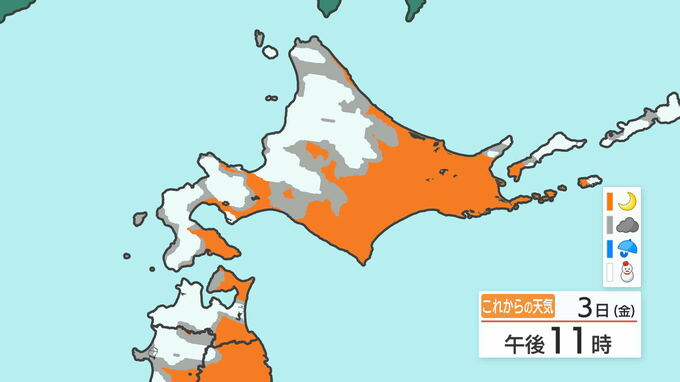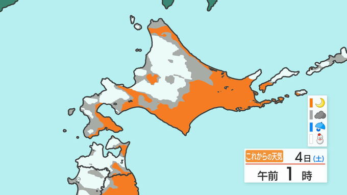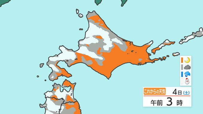 【しぶんぎ座流星群 2025】今夜ピーク 気になる天気は?【方角と時間帯/観察のポイント】 2025年1月3日(金) 12:30 国内 天気 3日(金)夜~4日(土)明け方の天気 1時間ごとのメッシュ予報を、地域ごとに画像で確認できます。太平洋側の地域は晴れる所が多く、観察できるところが多いでしょう。 「オレンジ」は「晴れ」、「グレー」は「くもり」、「青」は「雨」、「白」は「雪」の予想