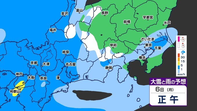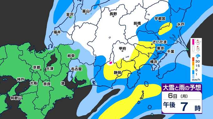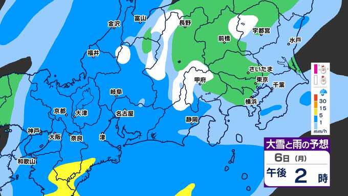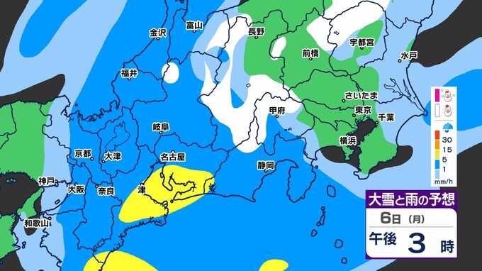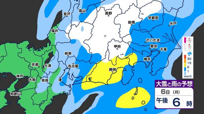 【近畿・東海・関東】南岸低気圧通過 東京は激しい雨か? 雨と雪のシミュレーション 2025年1月6日(月) 10:45 国内 天気 雨と雪のシミュレーションは画像でご覧いただけます。 「白」は雪、「水色・青・黄色」は雨の予想です