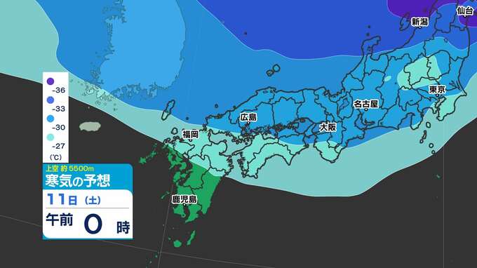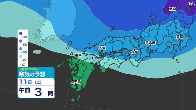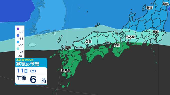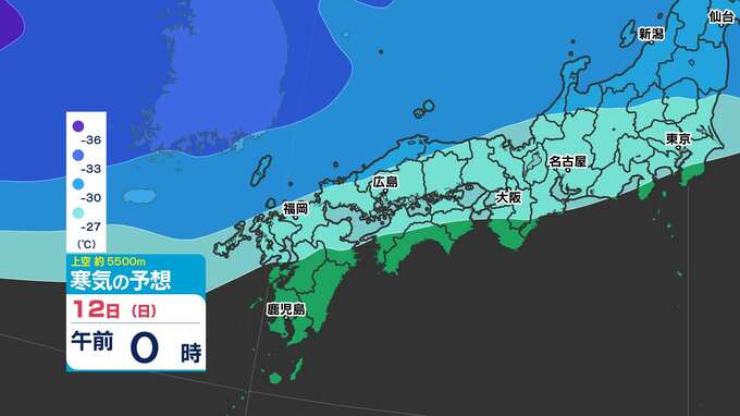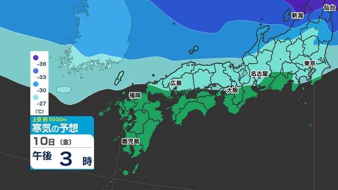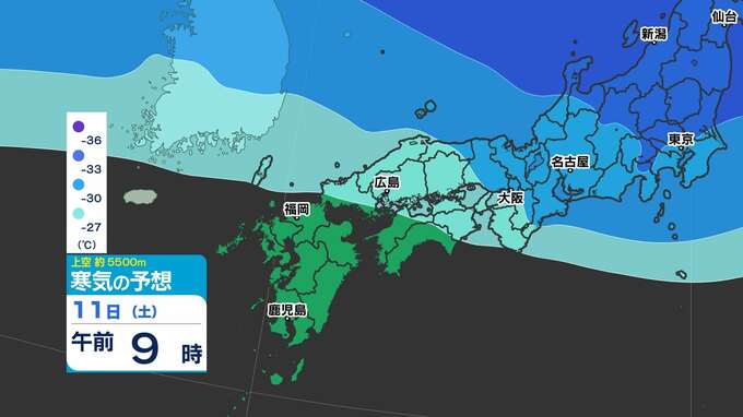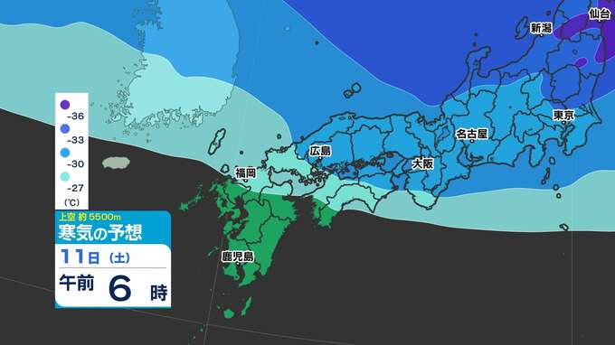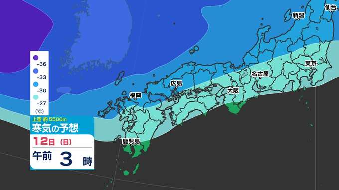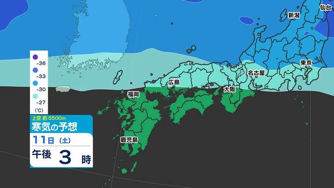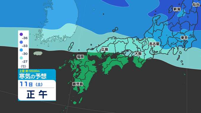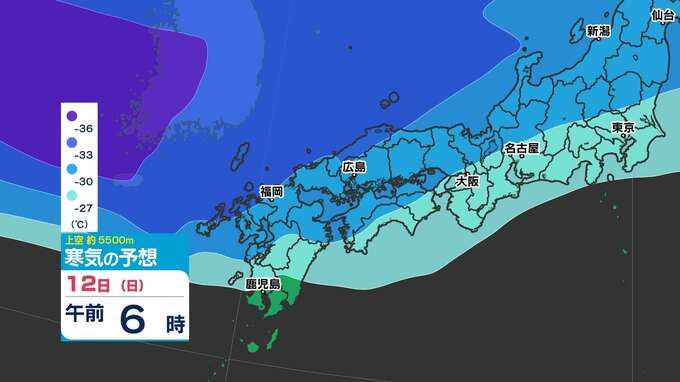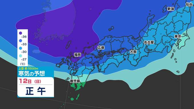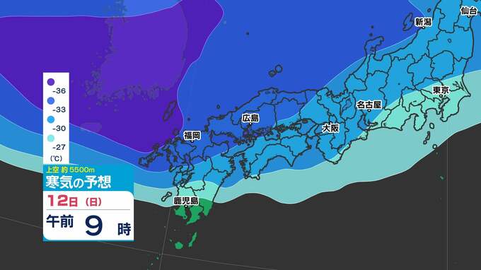 【大雪に関する気象情報】発表 12日(日)再び雪【福岡・佐賀・長崎・大分・熊本・宮崎・鹿児島】雪のシミュレーション / 3連休 成人式への影響は? 2025年1月10日(金) 19:00 国内 天気 寒気のシミュレーション 画像で確認できます。 上空約5500mで‐36℃以下の寒気は《大雪の目安》です。 12日(日)に九州北部に流れ込んできそうです。
