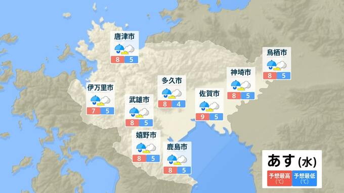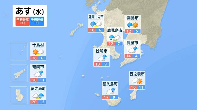 【九州今週の天気予報】今夜遅くから雨 そのあと冬型へ逆戻り【福岡・佐賀・長崎・大分・熊本・宮崎・鹿児島】雨と雪・寒気のシミュレーション 2025年1月14日(火) 12:30 国内 天気 あすの天気と週間予報 あす15日(水)雨のちくもり あさって16日(木)寒気の影響で、東シナ海側は雲が広がるでしょう。 寒気が入ってきますが、今週は広い範囲での雪は予想されていません。