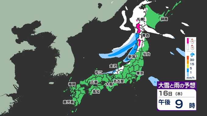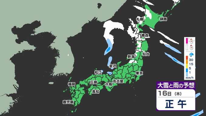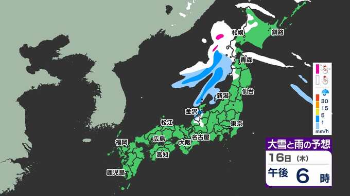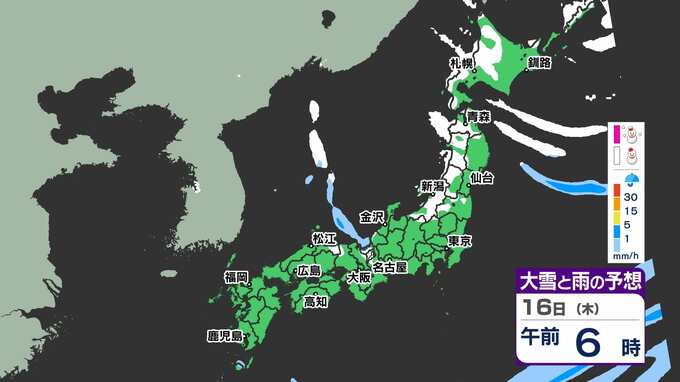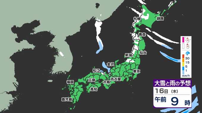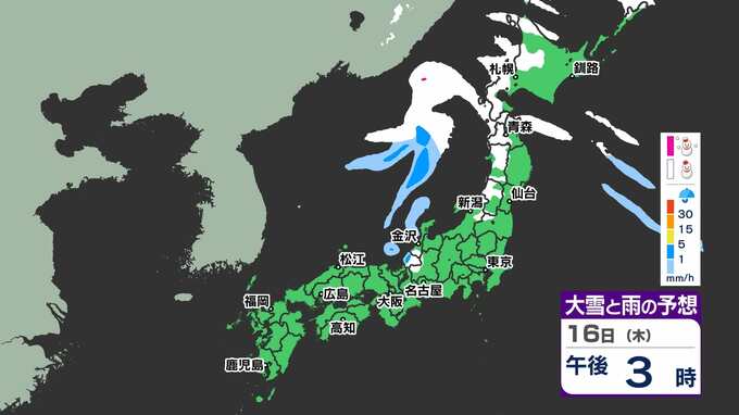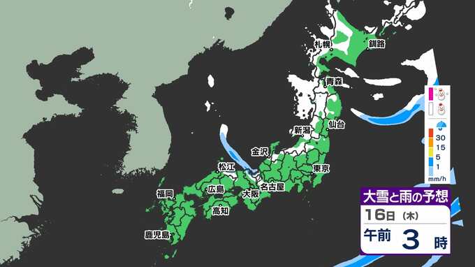 【雪はいつ、どこで降る】15日(水)朝 広く雪か雨 あす朝通勤通学は 少し早く出かけよう / 15日(水)~17日(金)大雪と雨・寒気のシミュレーション 2025年1月14日(火) 18:00 国内 天気 「赤」は「大雪」、「白」は雪の予想です。雨は色別に雨の強さも予想されています。