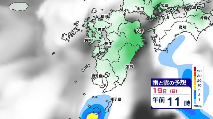 【九州土日&来週の天気】福岡・熊本の最高気温15℃前後【福岡・佐賀・長崎・大分・熊本・宮崎・鹿児島】雨と雲/寒気と暖気のシミュレーション 2025年1月17日(金) 16:20 国内 天気 白は雲、他の色は雨の強さの予想です