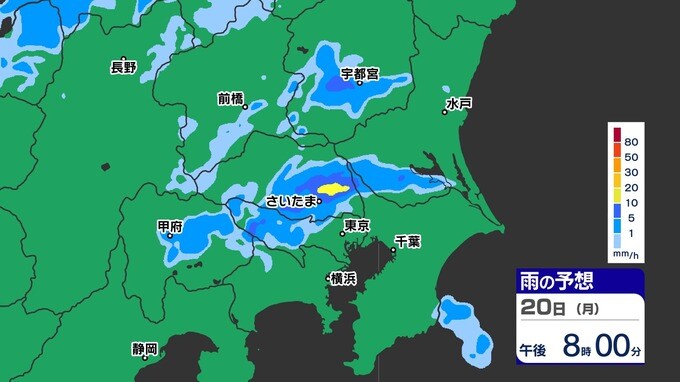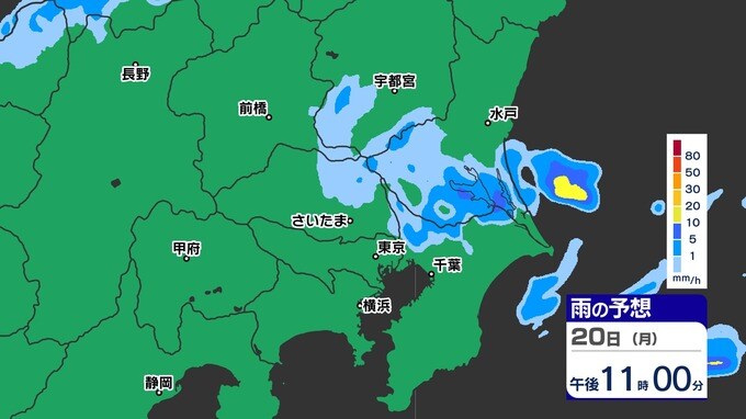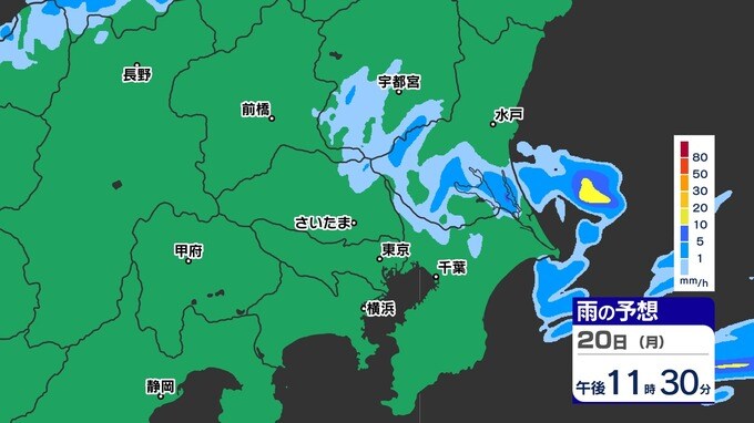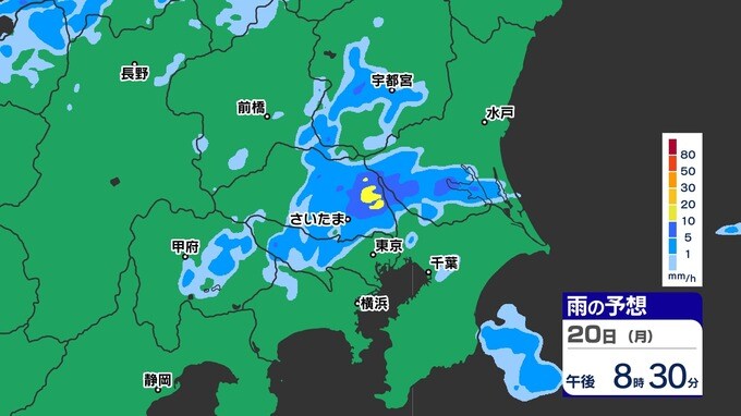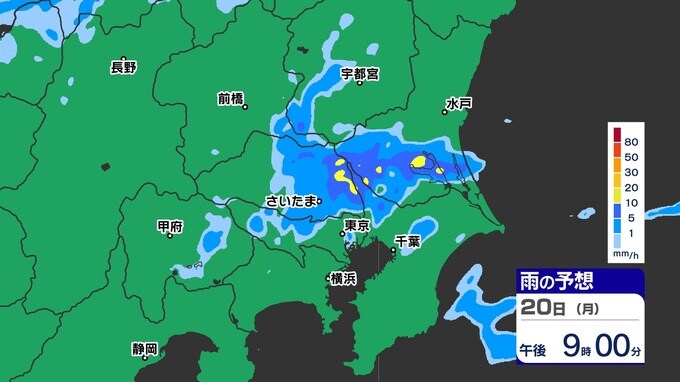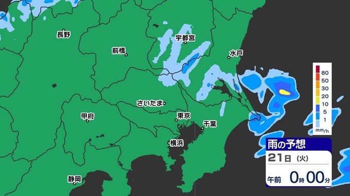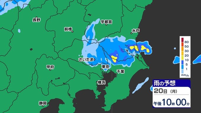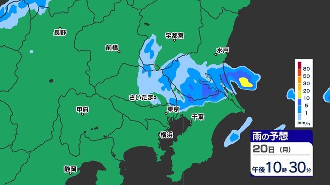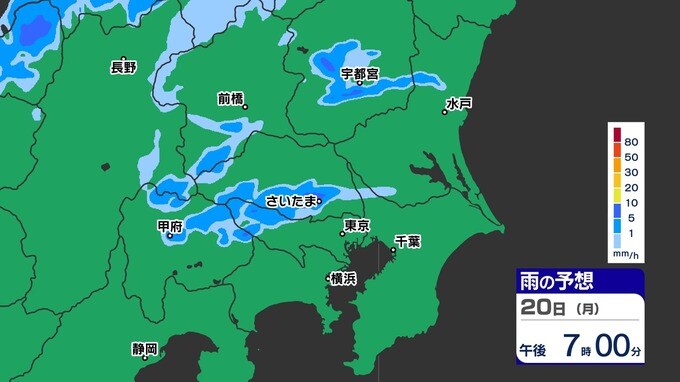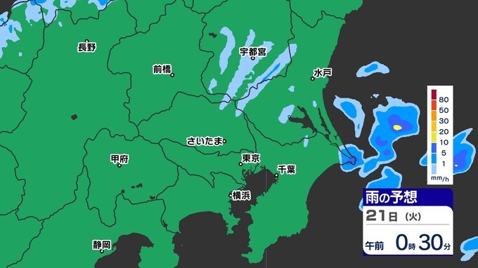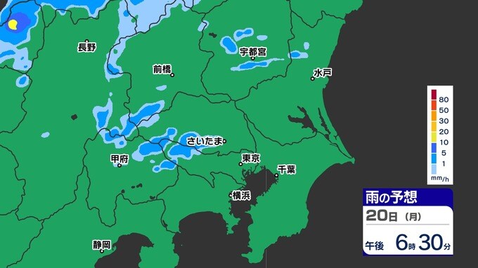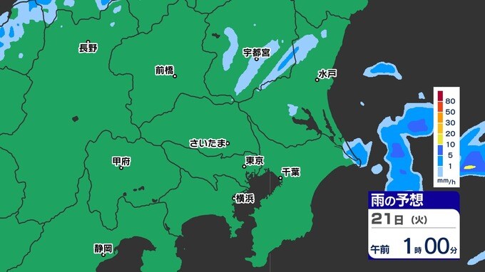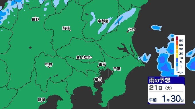 【東京・神奈川・埼玉】雷と突風及び降ひょうに関する気象情報【30分ごとの雨のシミュレーション】 2025年1月20日(月) 18:10 国内 天気 雨のシミュレーション 関東地方の雨雲シミュレーションは画像で掲載しています。天気の急変に注意しましょう。東京や埼玉、栃木、茨城などで雨雲が予想されています。埼玉、栃木、千葉では一部でやや強い雨が予想されている時間帯があります。