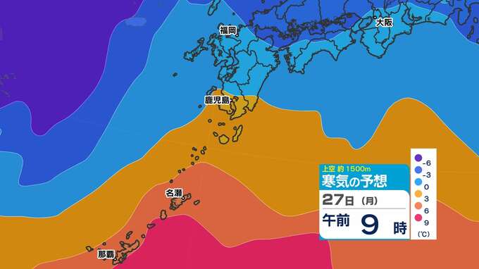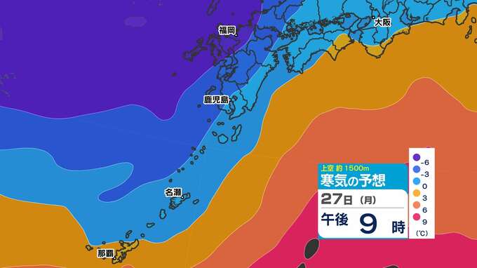 【雪の予想時間増える】来週前半 九州で雪の予想【福岡・佐賀・長崎・大分・熊本・宮崎・鹿児島】雪のシミュレーション/寒気のシミュレーション 2025年1月24日(金) 20:00 国内 天気 寒気のシミュレーション 25日(土)朝9時の段階では、九州南部を中心に暖かい空気に覆われていますが、27日(月)夜には九州北部に氷点下9℃以下の強い寒気が流れ込む予想です。