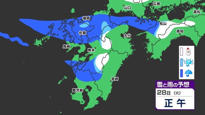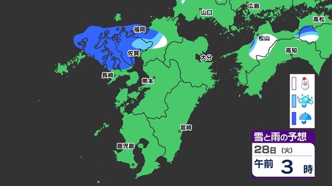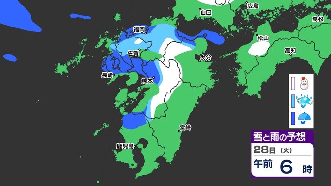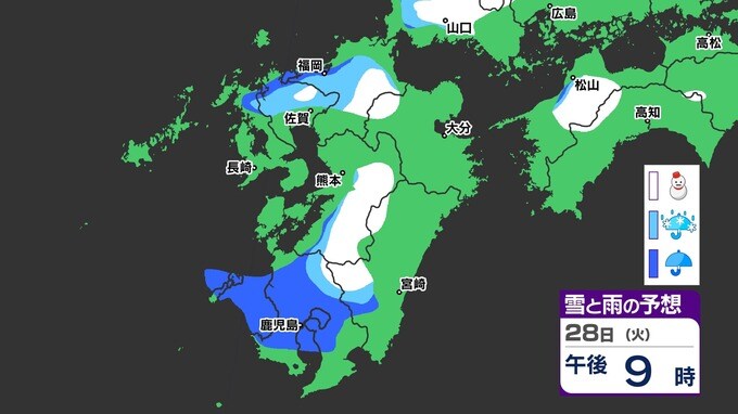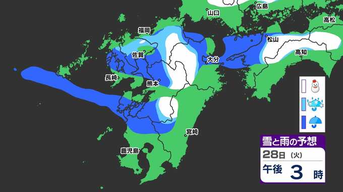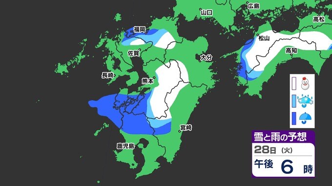 【雪はいつ どこで?】28日(火)29日(水)雪の予報【福岡・佐賀・長崎・大分・熊本・宮崎・鹿児島】雪のシミュレーション