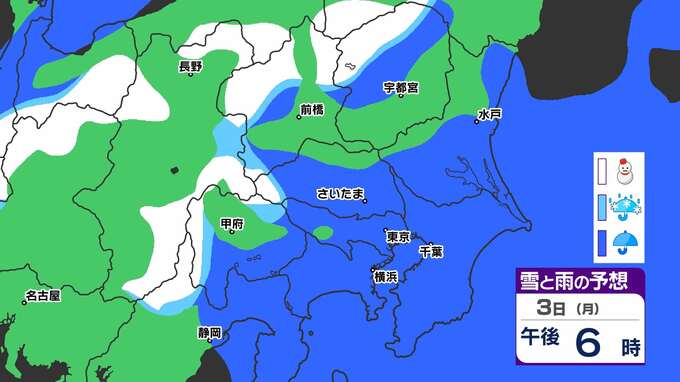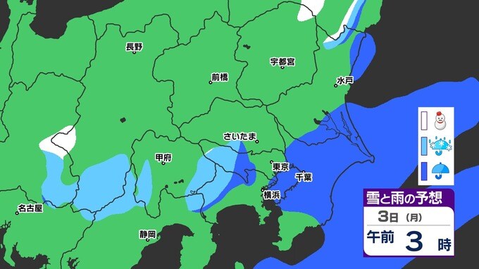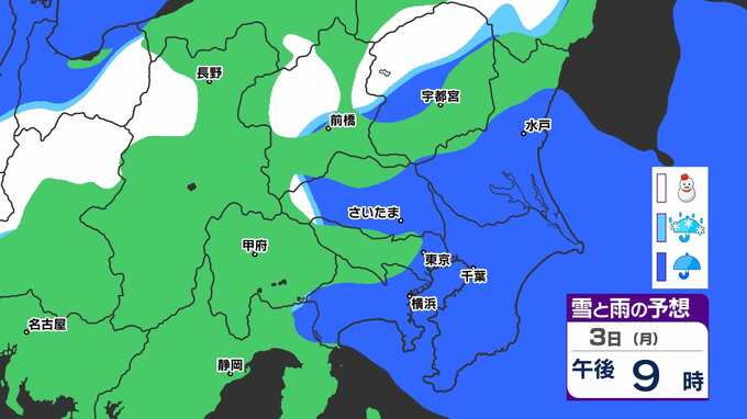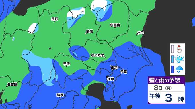 【東京・神奈川・首都圏2月2日(日)雪か?】中学入試 受験生 特に注意【雪はどこで いつから降る? 雪のシミュレーション】東京・神奈川・埼玉・千葉・群馬・栃木・茨城・山梨の天気予報 2025年1月30日(木) 15:00 国内 天気 『白』=『雪』/『水色』=『みぞれ(雨と雪が混ざったもの)』/『青』=『雨』の予想