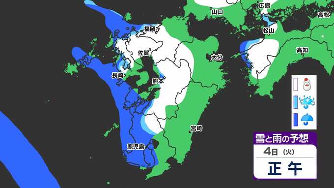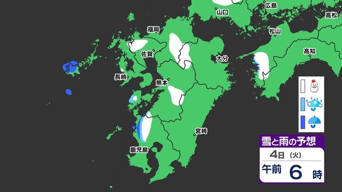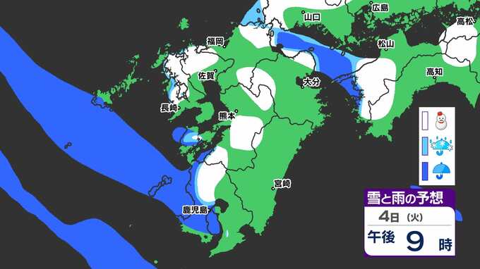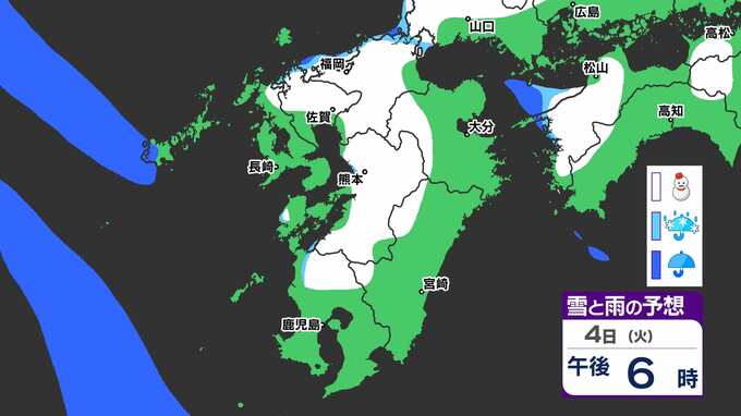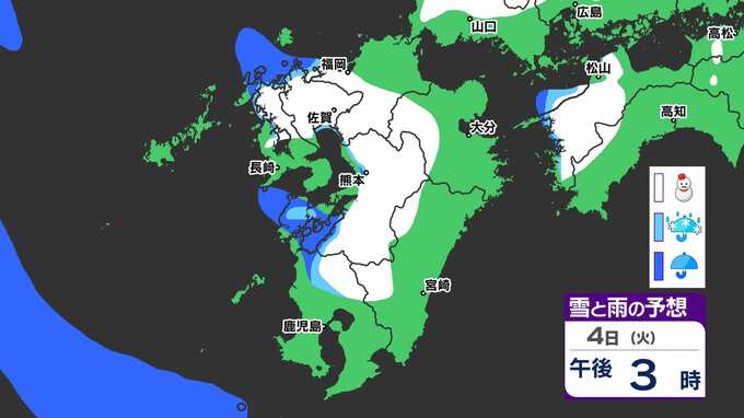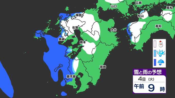 【立春寒波】福岡、熊本など平地も大雪おそれ「今季最強寒波」来週の雪は今週より多い【福岡・佐賀・長崎・大分・熊本・宮崎・鹿児島】雪のシミュレーション 2025年1月30日(木) 19:45 国内 天気 『白』=『雪』/『水色』=『みぞれ(雨と雪が混ざったもの)』/『青』=『雨』の予想