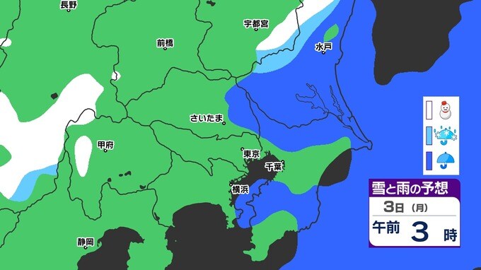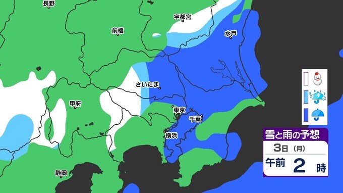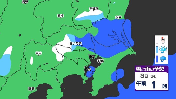 【東京・神奈川・首都圏2月2日(日)雪の予想】中学入試 受験生は早めに家を出よう【雪はどこで いつから降る?/1時間ごと雪シミュレーション】東京・神奈川・埼玉・千葉・群馬・栃木・茨城・山梨の天気予報 2025年1月31日(金) 21:30 国内 天気 『白』=『雪』/『水色』=『みぞれ(雨と雪が混ざったもの)』/『青』=『雨』の予想