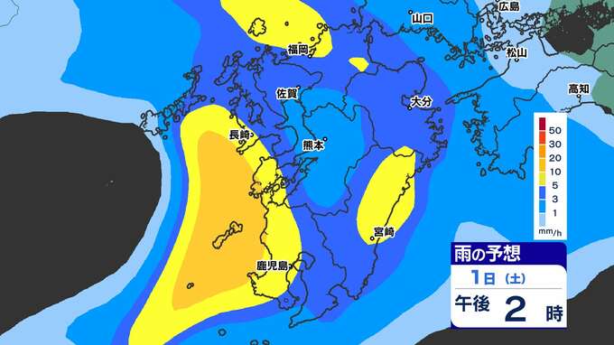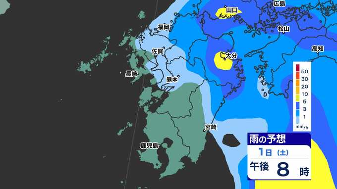 【立春寒波の前に”冬の嵐”】2月1日(土)落雷と突風に注意 雨のシミュレーション【福岡・佐賀・長崎・大分・熊本・宮崎・鹿児島】 2025年1月31日(金) 21:20 国内 天気 2月1日(土)雨のシミュレーション 活発な雨雲を示す、黄色やオレンジといった表示が予想されています。雨の多い夏の時季ならよくありますが、もともと雨の少ない冬には珍しいことです。 画像で確認できます。