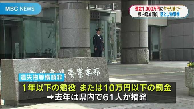 落とし物を持ち帰った場合、遺失物等横領罪で1年以下の懲役または10万円以下の罰金が科せられ、実際に県内では去年、61人が摘発されています。