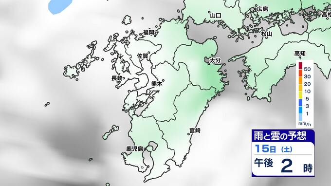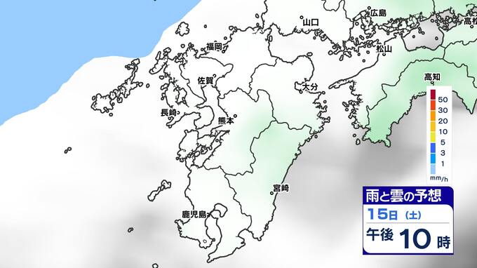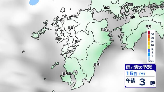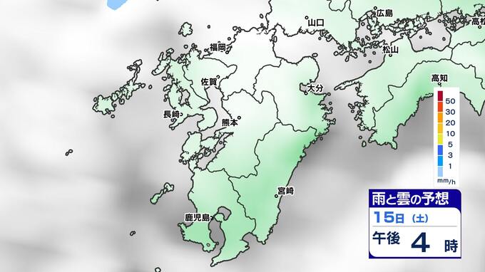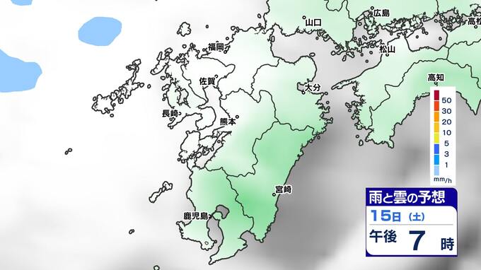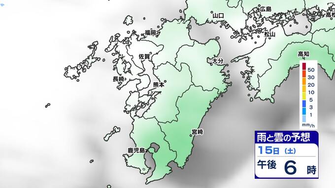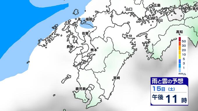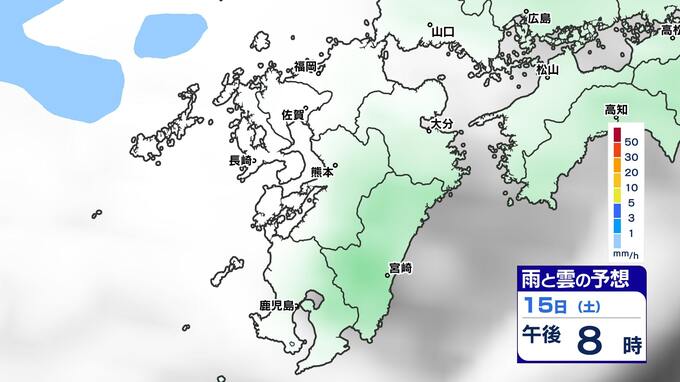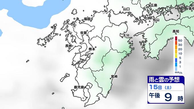 【土日は雨】 来週は再び寒波到来 寒さ厳しく 雪の心配は?【福岡・佐賀・長崎・大分・熊本・宮崎・鹿児島】雨と雲のシミュレーション&週間予報 2025年2月14日(金) 19:30 国内 天気 雨と雲のシミュレーション(15日(土)~16日(日)) 雨の降りだしは15日(土)夜遅くで、九州南部では16日(日)朝、雨が強まる予想です。16日(日)昼頃には雨雲は抜けて、午後からは回復に向かい雲も取れて日差しが出てくるでしょう。 「白」は「くもり」、「青色」は「雨」、「黄」は雨が強まる予想