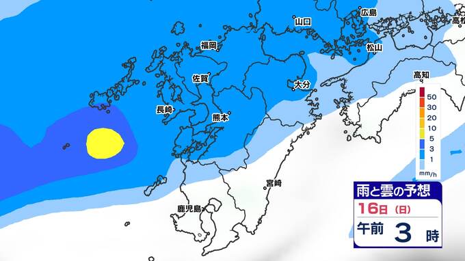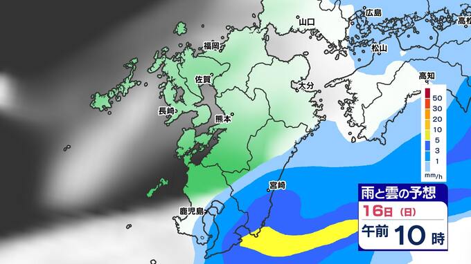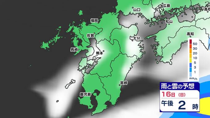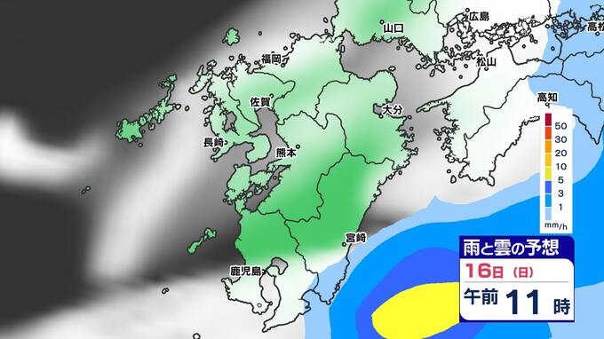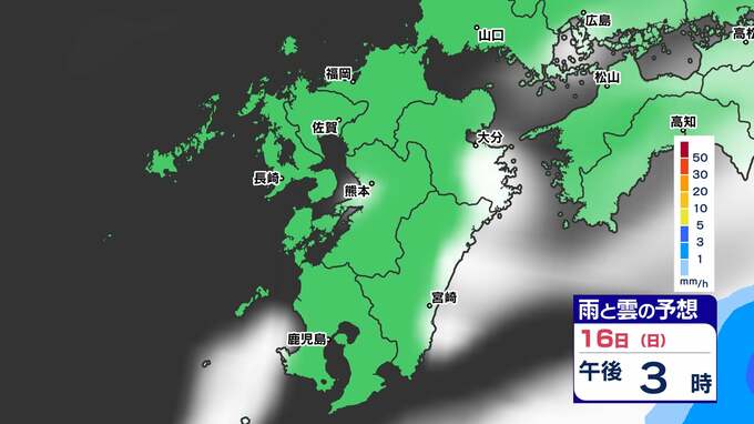 【土日は雨】 来週は再び寒波到来 寒さ厳しく 雪の心配は?【福岡・佐賀・長崎・大分・熊本・宮崎・鹿児島】雨と雲のシミュレーション&週間予報 2025年2月14日(金) 19:30 国内 天気 「白」は「くもり」、「青色」は「雨」、「黄」は雨が強まる予想
