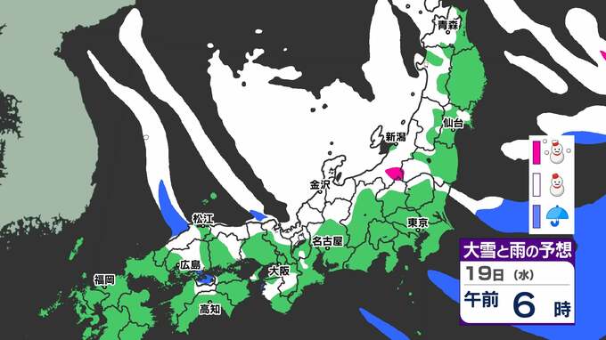 【大雪情報】17日(月)から寒波「大雪に関する気象情報」気象庁発表 警報級の大雪のおそれ 【大雪はいつどこで?】大雪&寒気シミュレーション17日(月)~21日(金) 2025年2月16日(日) 20:00 国内 天気 「赤」は「大雪」、「白」は「雪」、「青」は雨の予想