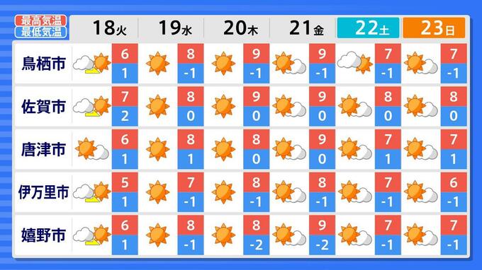 【17日(月)寒波始まる】 今週は寒い 雪の心配は? 寒気&雪のシミュレーション17日(月)~21日(金)【福岡・佐賀・長崎・大分・熊本・宮崎・鹿児島】 2025年2月16日(日) 20:15 国内 天気 週間予報 長い寒波 寒気が居座り気温が低い日が続くため、体調を崩さないように気を付けましょう。長崎県では18(火)19(水)公立高校入試が行われます、受験生は特に注意しましょう。週間予報は画像で確認できます。