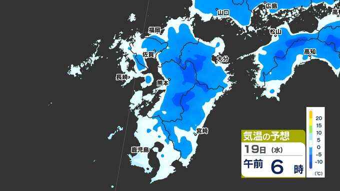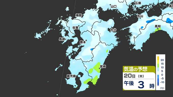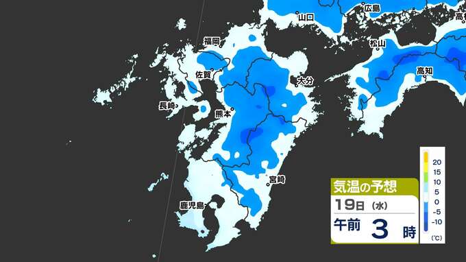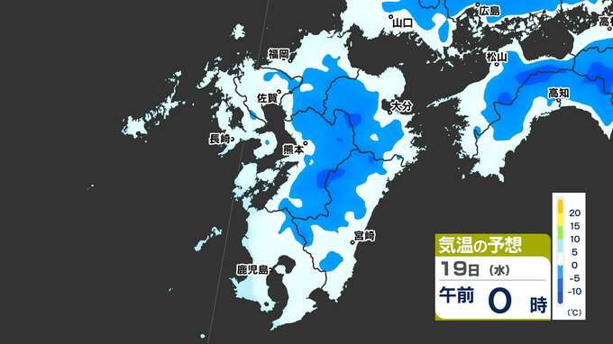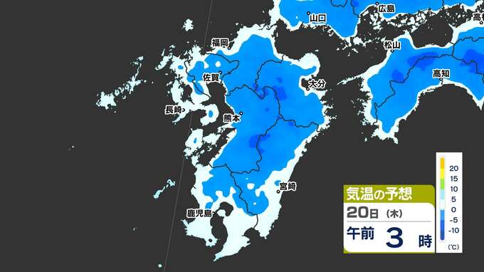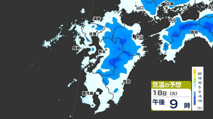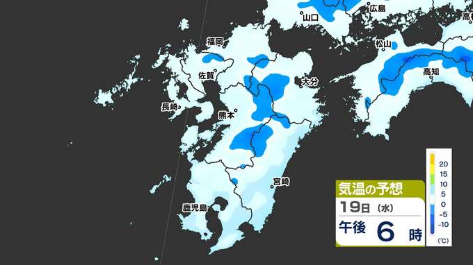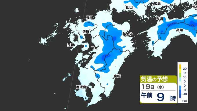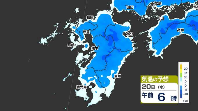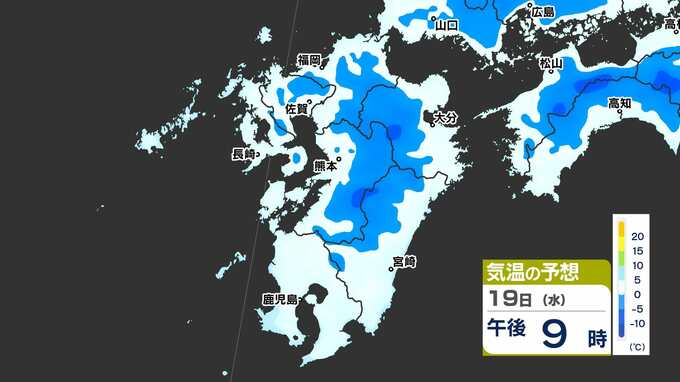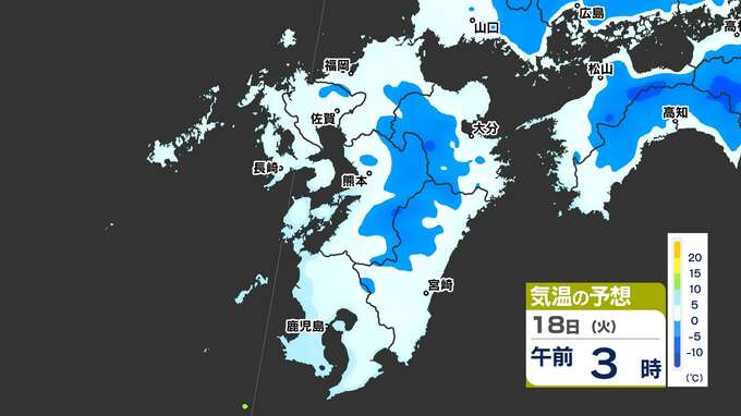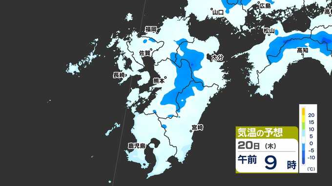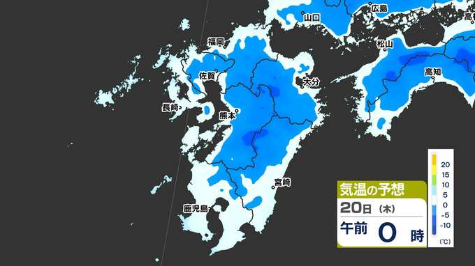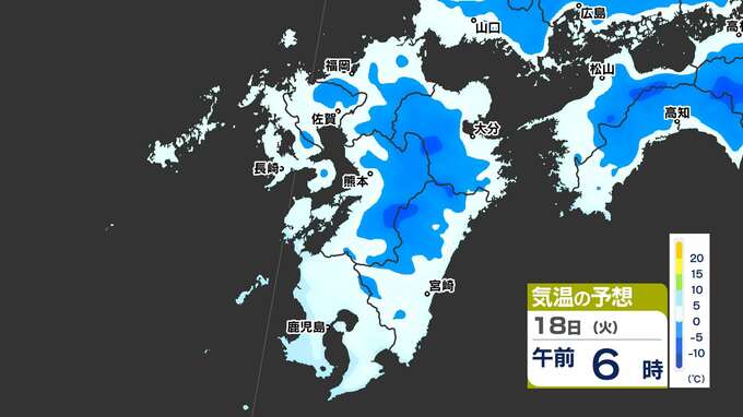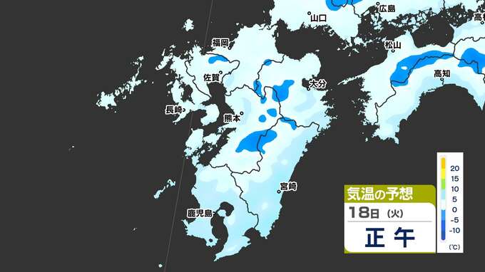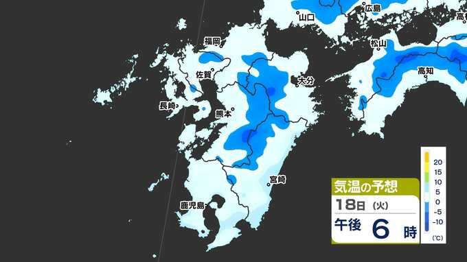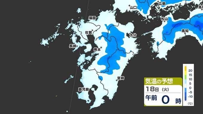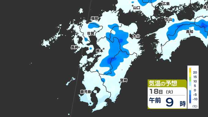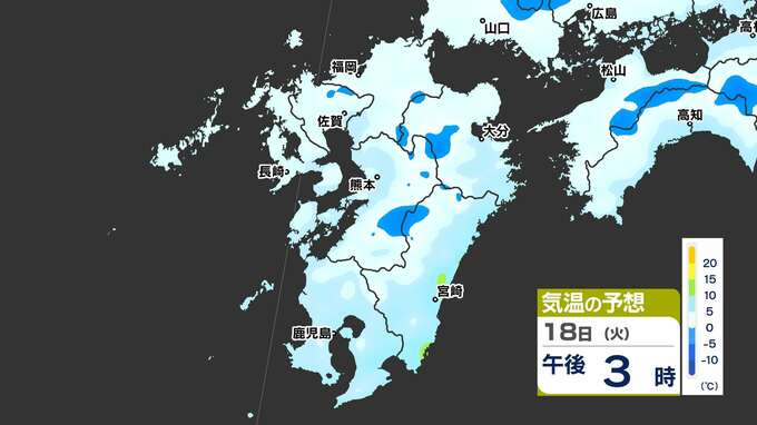 【最長寒波】厳しい寒さ続く 3連休も寒い 雪の心配は? 寒気&雪のシミュレーション17日(月)~22日(土)【福岡・佐賀・長崎・大分・熊本・宮崎・鹿児島】 2025年2月17日(月) 20:00 国内 気温のシミュレーション17日(月)~20日(木) 夜から朝は氷点下の冷え込みの所も多いでしょう。また、昼に10℃以上の〈黄緑色〉表示がほとんど出てきません。