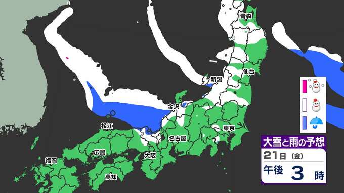 【最長寒波】厳しい寒さ続く 3連休も寒い 雪の心配は? 寒気&雪のシミュレーション17日(月)~22日(土)【福岡・佐賀・長崎・大分・熊本・宮崎・鹿児島】 2025年2月17日(月) 20:00 国内 「赤」は「大雪」、「白」は「雪」、「青」は雨の予想