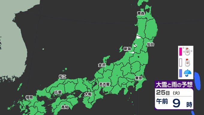 【強烈寒波】3連休に次のピークか? 酸ヶ湯506cm積雪 12年ぶりに5m到達 【雪のシミュレーション20日(木)~25日(火)】気象庁長官「何日も雪が続くことで非常に大きな積雪量に」 2025年2月20日(木) 19:30 国内 天気 「赤」は「大雪」、「白」は「雪」、「青」は雨の予想