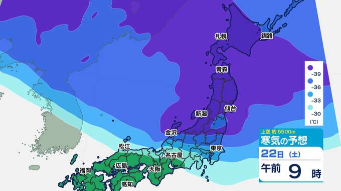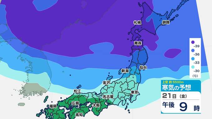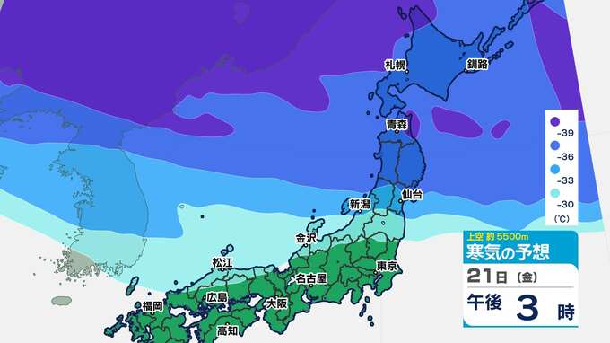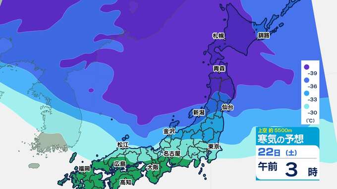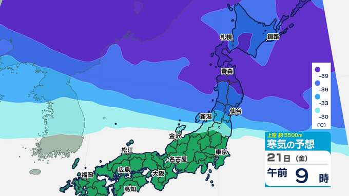 【強烈寒波】3連休に次のピークか? 酸ヶ湯506cm積雪 12年ぶりに5m到達 【雪のシミュレーション20日(木)~25日(火)】気象庁長官「何日も雪が続くことで非常に大きな積雪量に」 2025年2月20日(木) 19:30 国内 天気 寒気シミュレーション20日(木)~23日(日祝) 東北地方で氷点下39℃以下の強い寒気が予想されています。