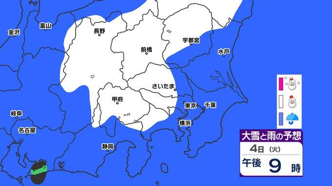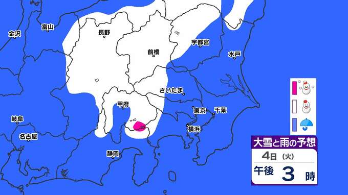 【東京都心 大雪か?】土日暖かい 来週寒さ厳しい【東京・神奈川・埼玉・千葉に雪の予報】雪のシミュレーション3月2日(日)~5日(水)/ 雪はいつから 大雪はどこで? 2025年2月28日(金) 20:45 国内 天気 「赤」は「大雪」、「白」は「雪」、「青」は雨の予想