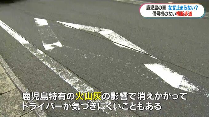 (JAF鹿児島支部推進課 江原諒さん)「鹿児島特有の火山灰の影響で消えかかって、ドライバーが気づきにくいこともある」