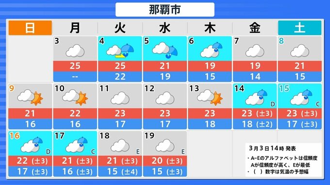 【早期天候情報】来週 九州沖縄は気温高め 汗ばむ陽気? 気象庁の予想詳しく【福岡市・北九州市・熊本市・佐賀市・長崎市・大分市・宮崎市・鹿児島市・那覇市】の16日間予想 2025年3月3日(月) 20:00 国内 天気